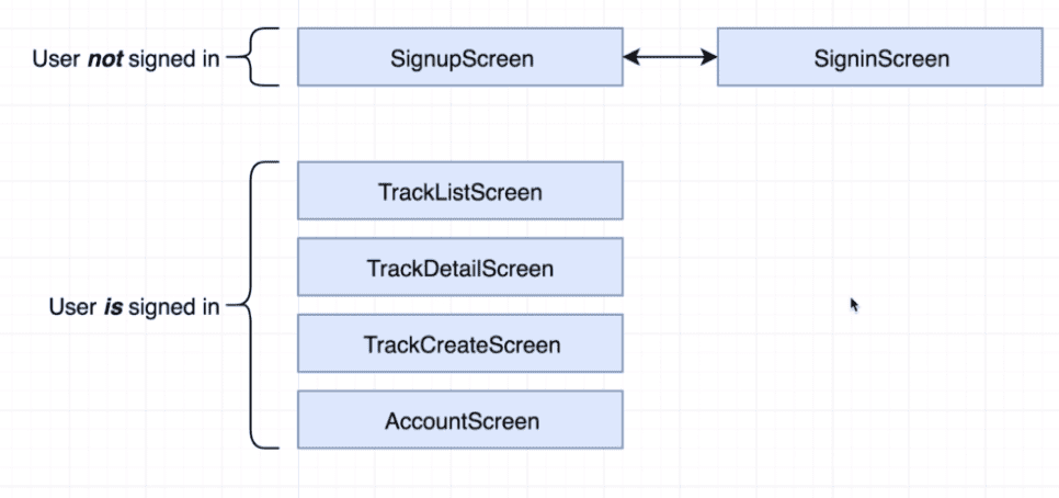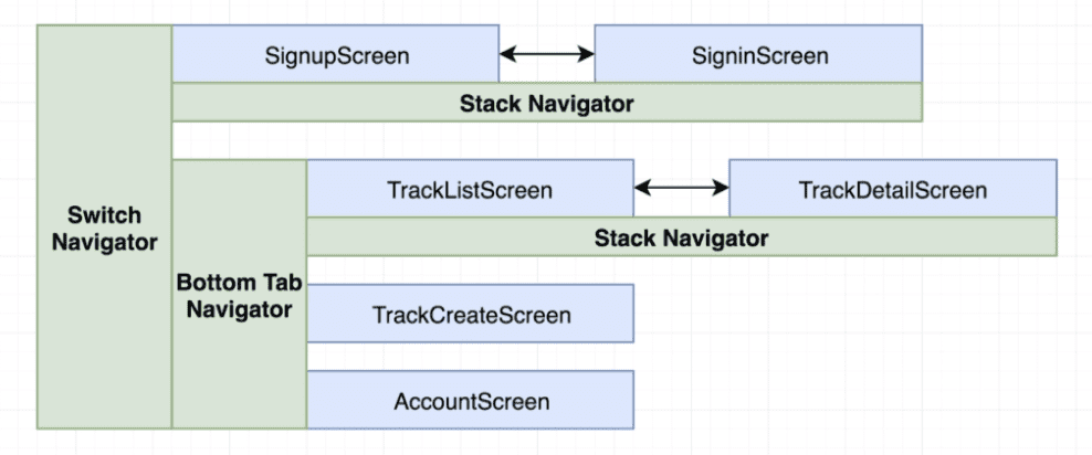 track list → track detail로 갈 때, detail 화면에서 하단 탭이 보이지 않게 하기 위해 구조를 변경함. 서로 탭끼리 움직여야 하는 애들을 createBottomTabNavigator 안에 배치하고, 해당 탭에서 가고 싶은 화면은 createBottomTabNavigator 밖에 stack으로 배치한다